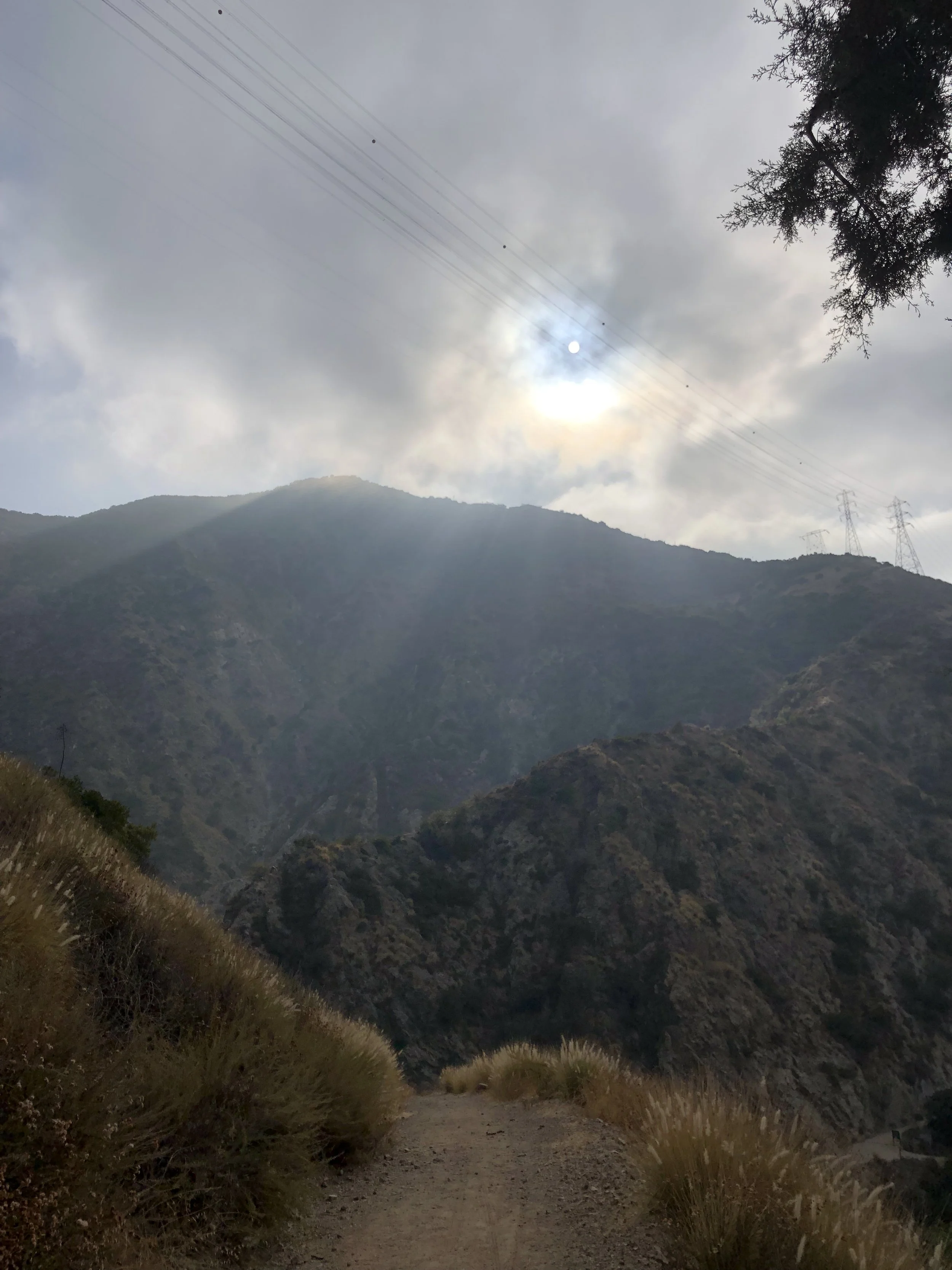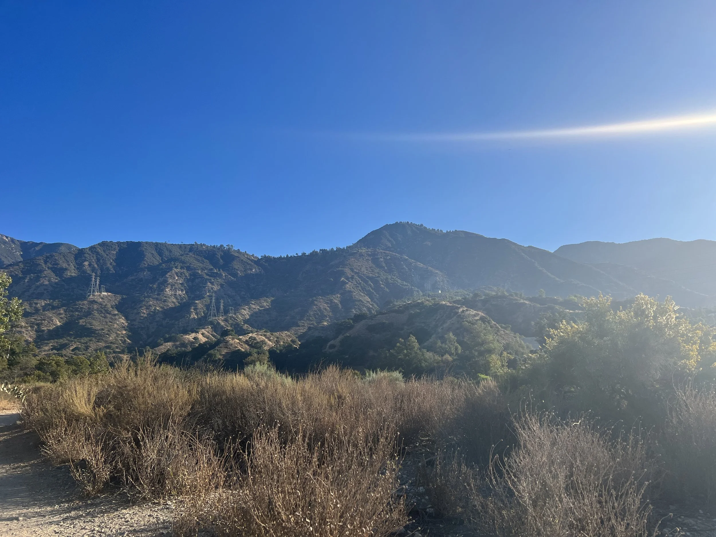 The San Gabriel mountains in the distance at the trail head by the Nature Reserve