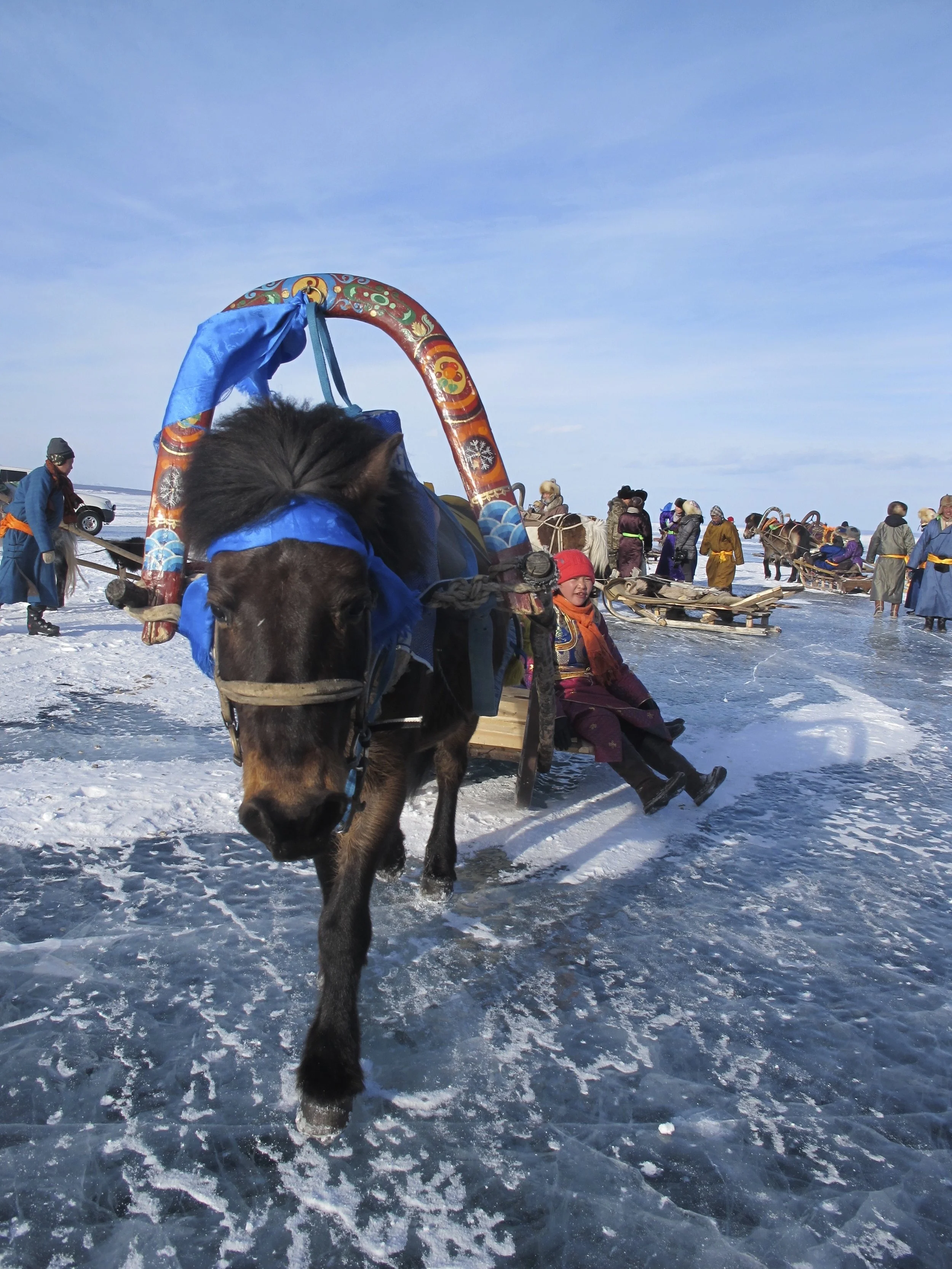 The lake freezes over meters deep, cars blast music and zoom along it, fires are ablaze, ice fishing and ice sculptures abound, and horse sleigh races with boys and men who donn fur take place. The food is unique and features fish mostly from the lake. The quirky spirituality of the northern area is represented and it feels like being in a time unknown.