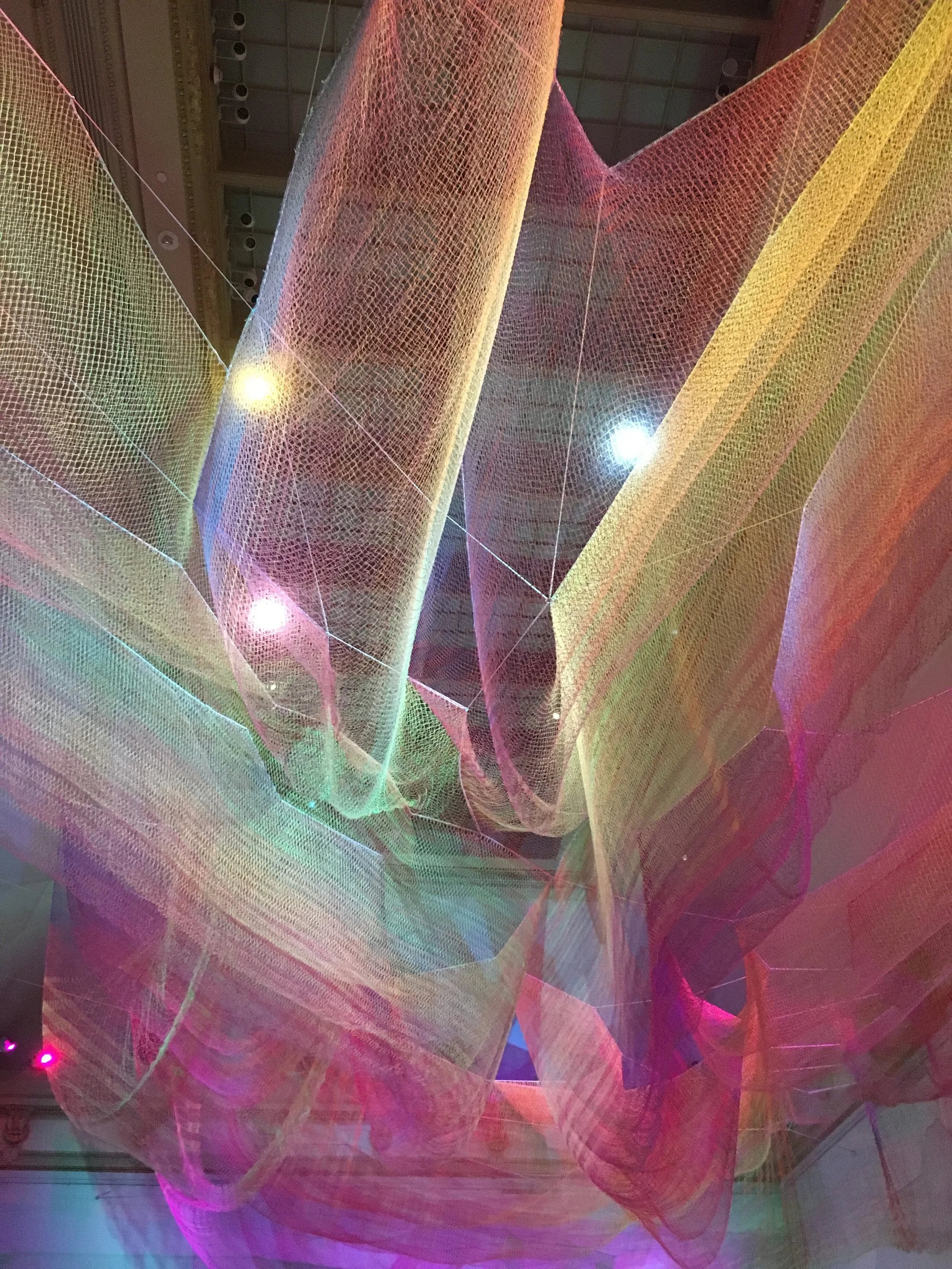 The installation takes up a huge room on the second floor and pillows adorn the area so you can lay or sit and wonder at what’s hung above