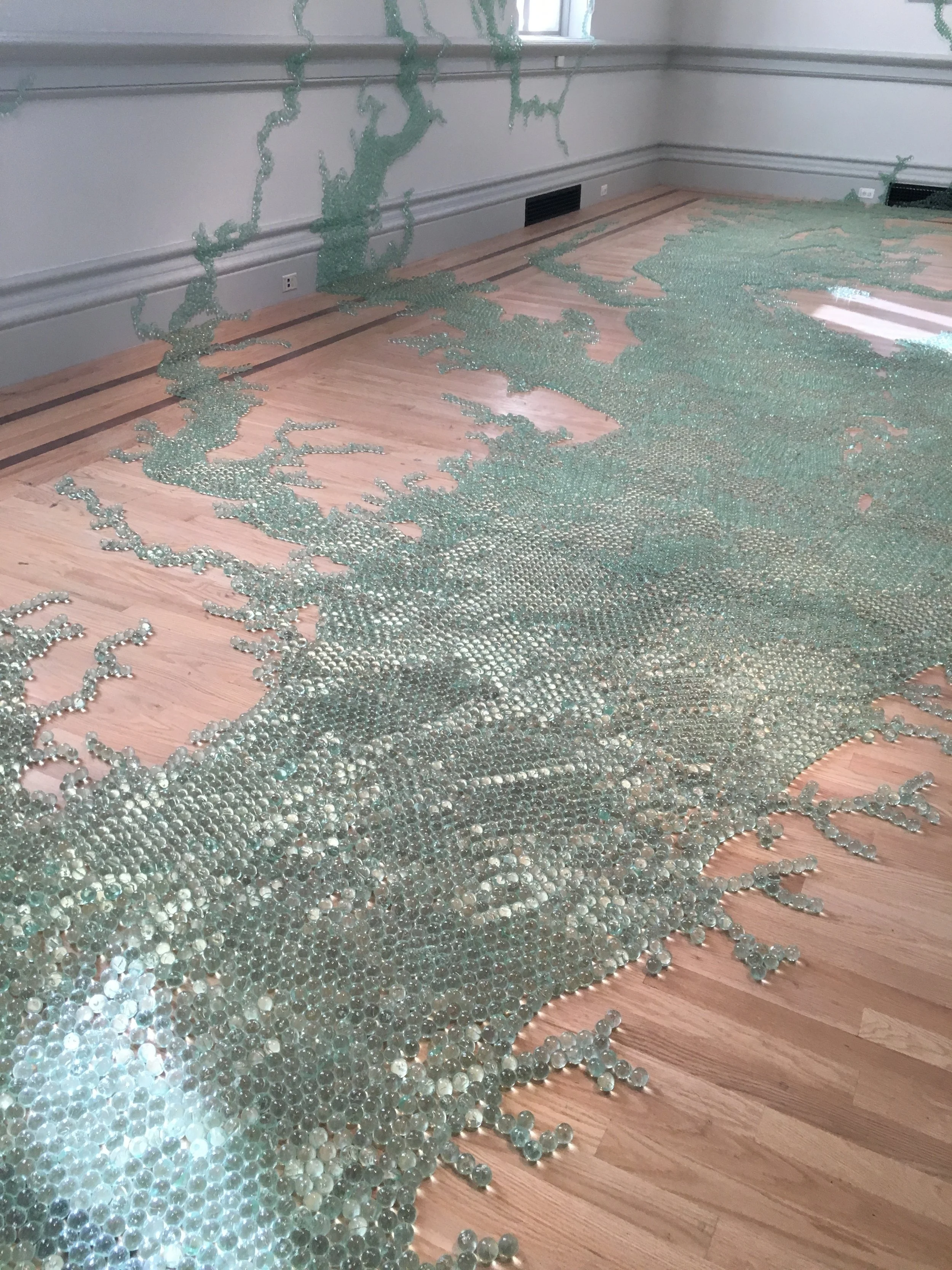Green marbles as a part of the immersive Wonder exhibit
