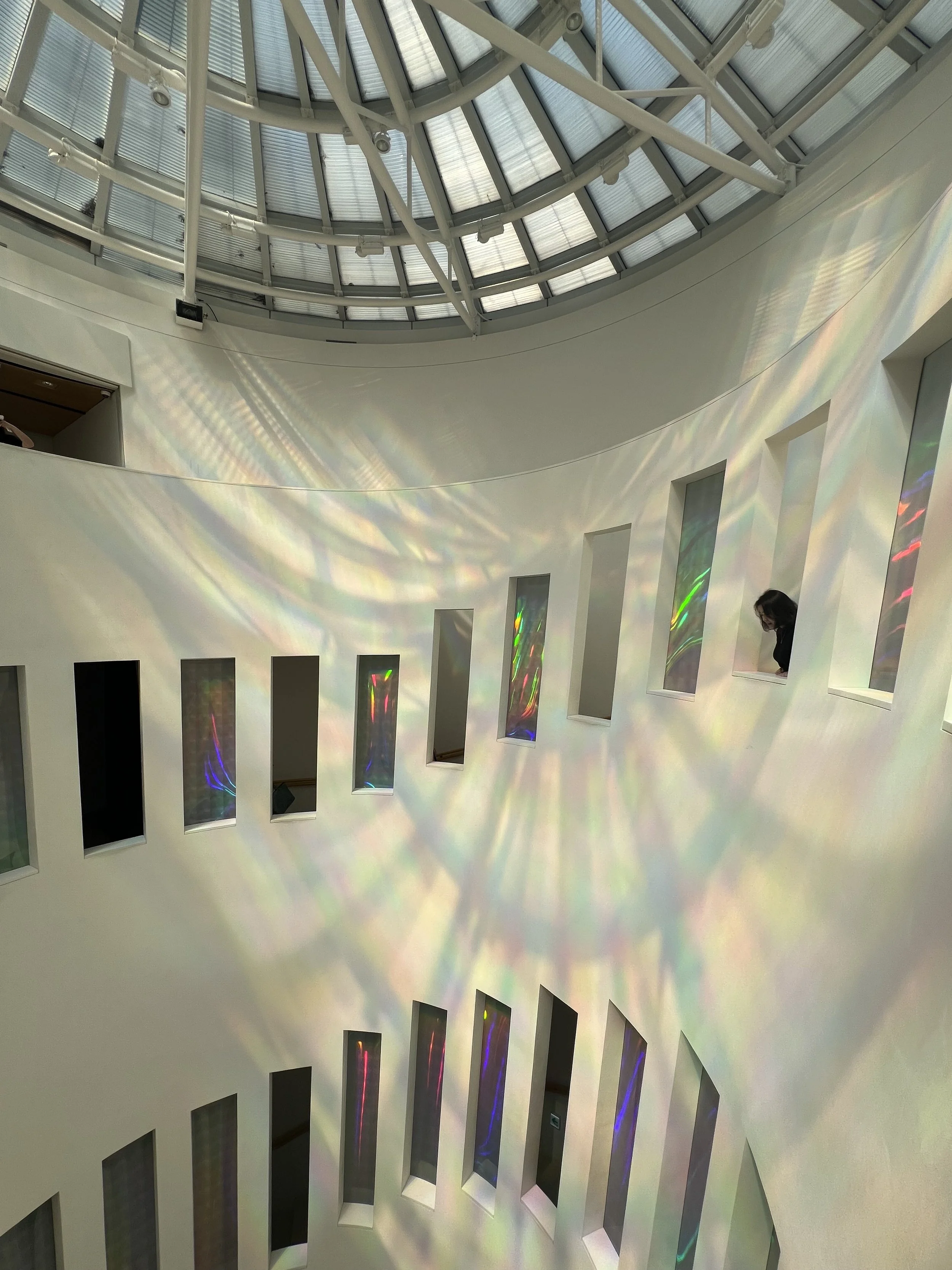 The installations incorporate impactful architectural components mixed with plays of shape with light. The installations swerve with the corporeality of humans and with that of what we surround ourselves with. It’s spectacular and a full-body immersion of space, color, shape, and light.